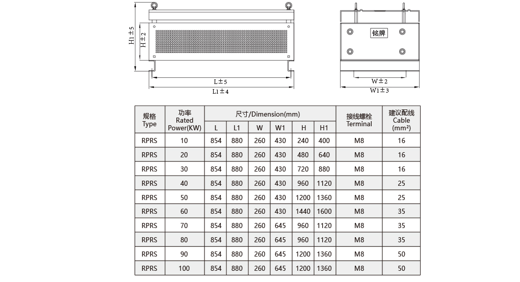 RPRS 系列产品是由不锈钢电阻片组成的电阻柜,适用于大功率,大电流的制动设备,实验测试设备,电梯、起重等变频器的能耗制动回路中。