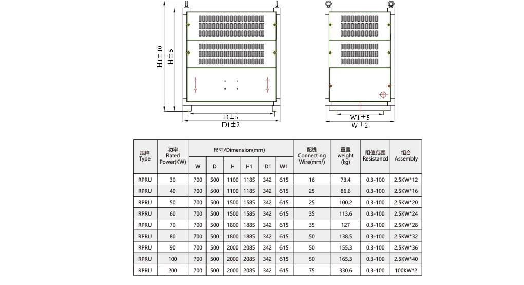 RPRU 系列产品是由波纹电阻器组成的电阻柜,适用于大功率,大电流的制动设备,实验测试设备,电梯、起重等变频器的能耗制动回路中。